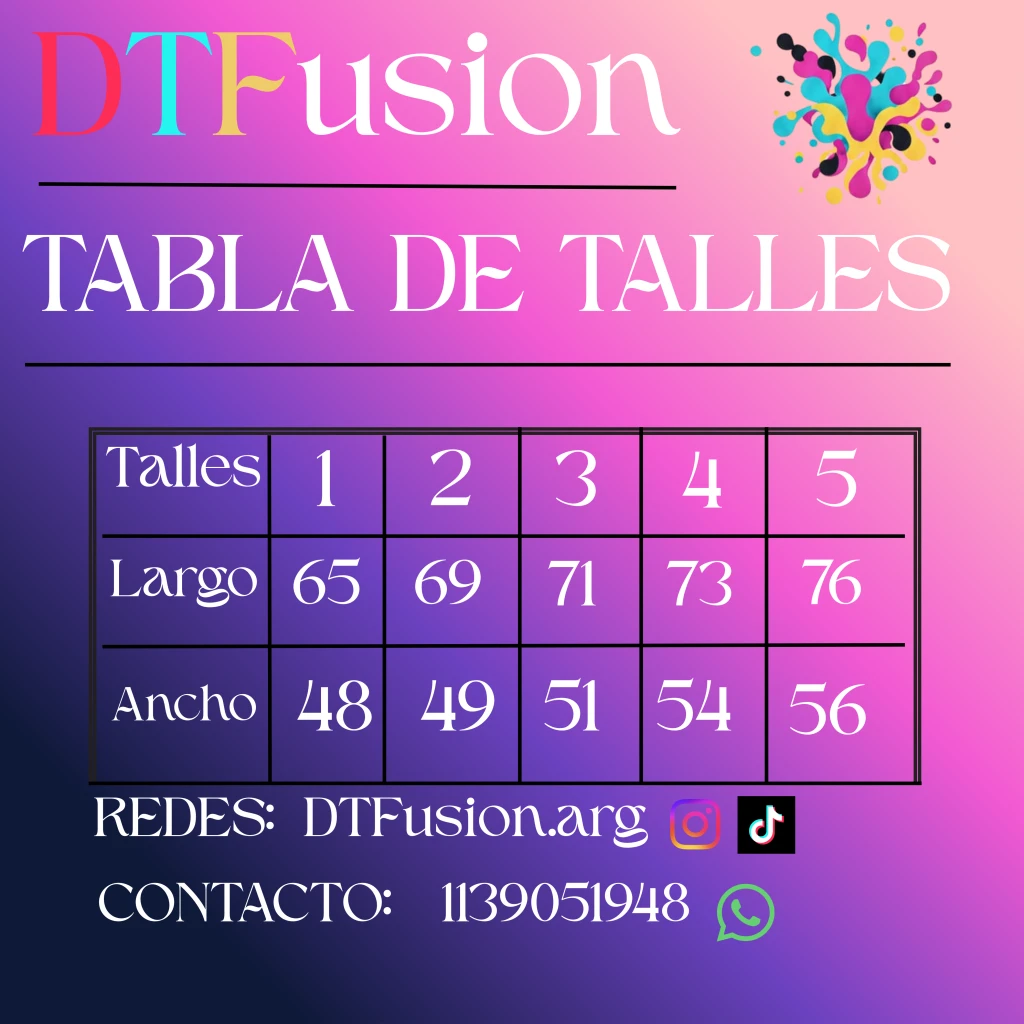 Talles Adulto: S al XXL (1 al 5).